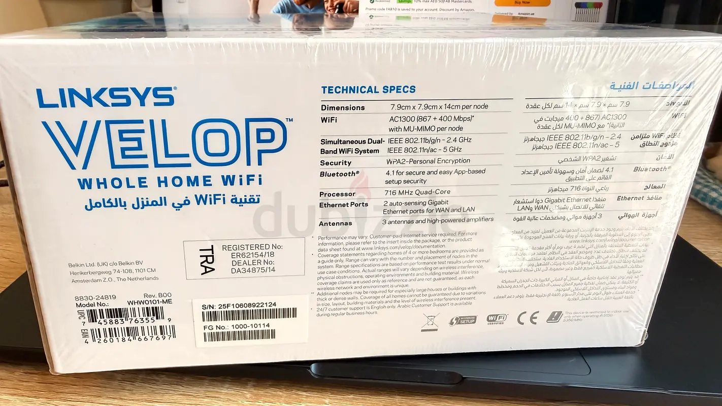 I'm selling a brand new Linksys Velop Whole Home WiFi System that has never been used. The packaging is flawless, and it’s ideal for anyone looking to improve their home internet coverage. This system provides seamless WiFi connectivity throughout your home, eliminating dead zones and ensuring a strong internet connection in every corner.