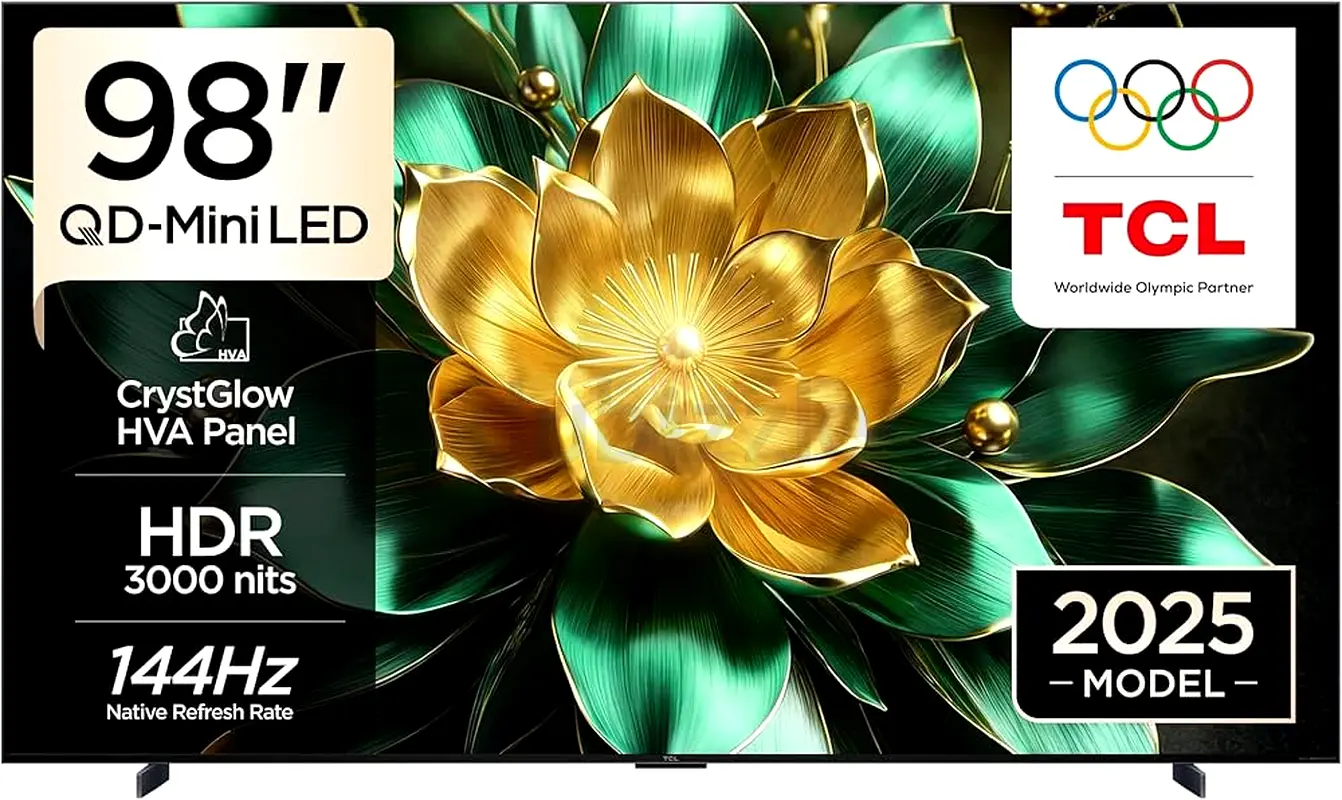 TCL 98C7K Television 98 Inch Smart TV 4K QD-Mini LED Colorful Quantum Crystal HDR 3000nits Gaming Google TV, 144Hz Native Refresh Rate, Audio by Bang & Olufsen, Dolby Atmos, Game Master (2025 Model) Same like new condition
