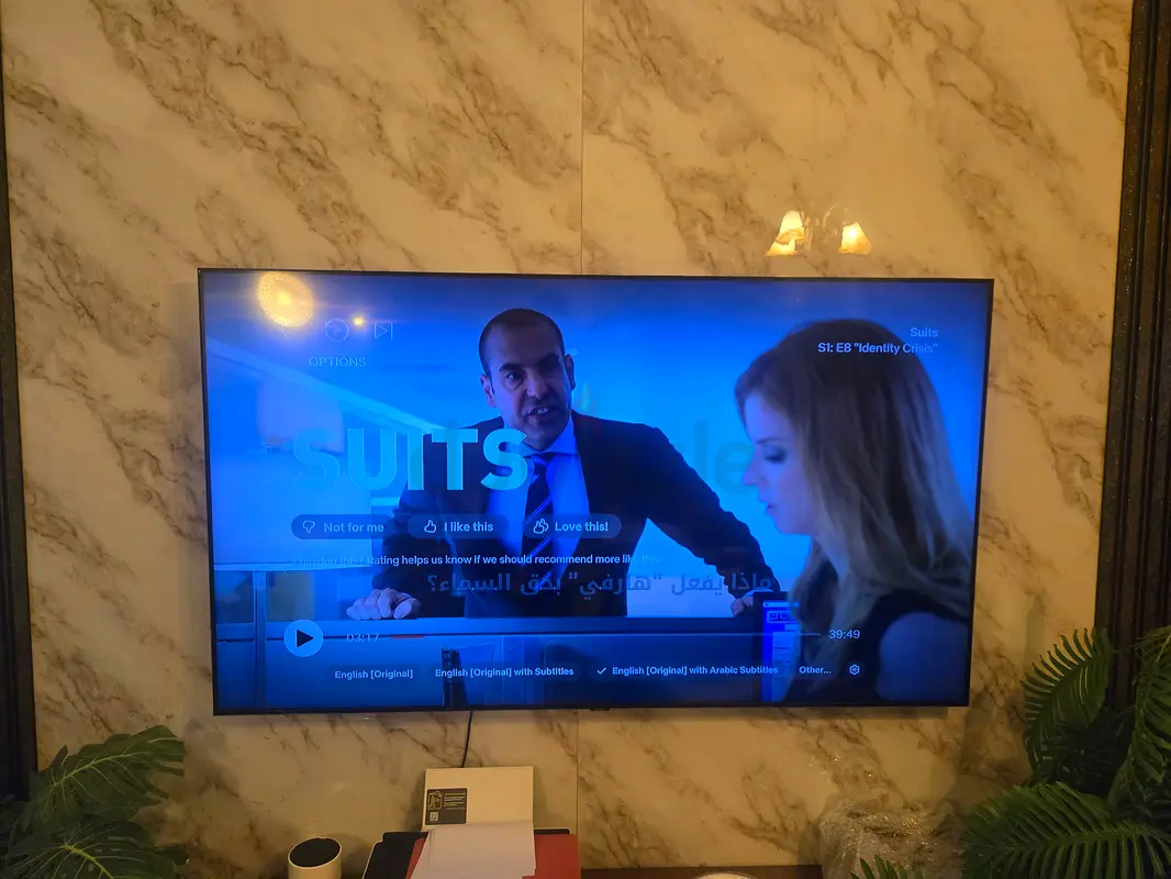 - Apps: YouTube, Netflix, Shahid, Prime Video, AirPlay 2