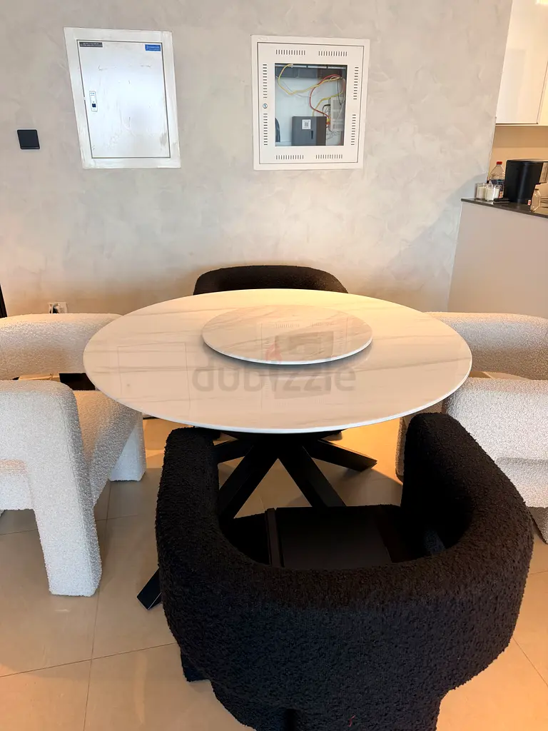 I’m selling a set of 4 upholstered dining chairs in black and white. I bought them about 1–6 months ago and they’ve seen only light use, so they’re in excellent condition with no stains, rips, or structural issues. The chairs have a modern, curved design with cushioned seats and fabric upholstery — two in black and two in off-white/cream (see pictures). They’re comfortable for dining and match contemporary interiors. Available for pickup in Dubai. Table not included in price but is available for sale