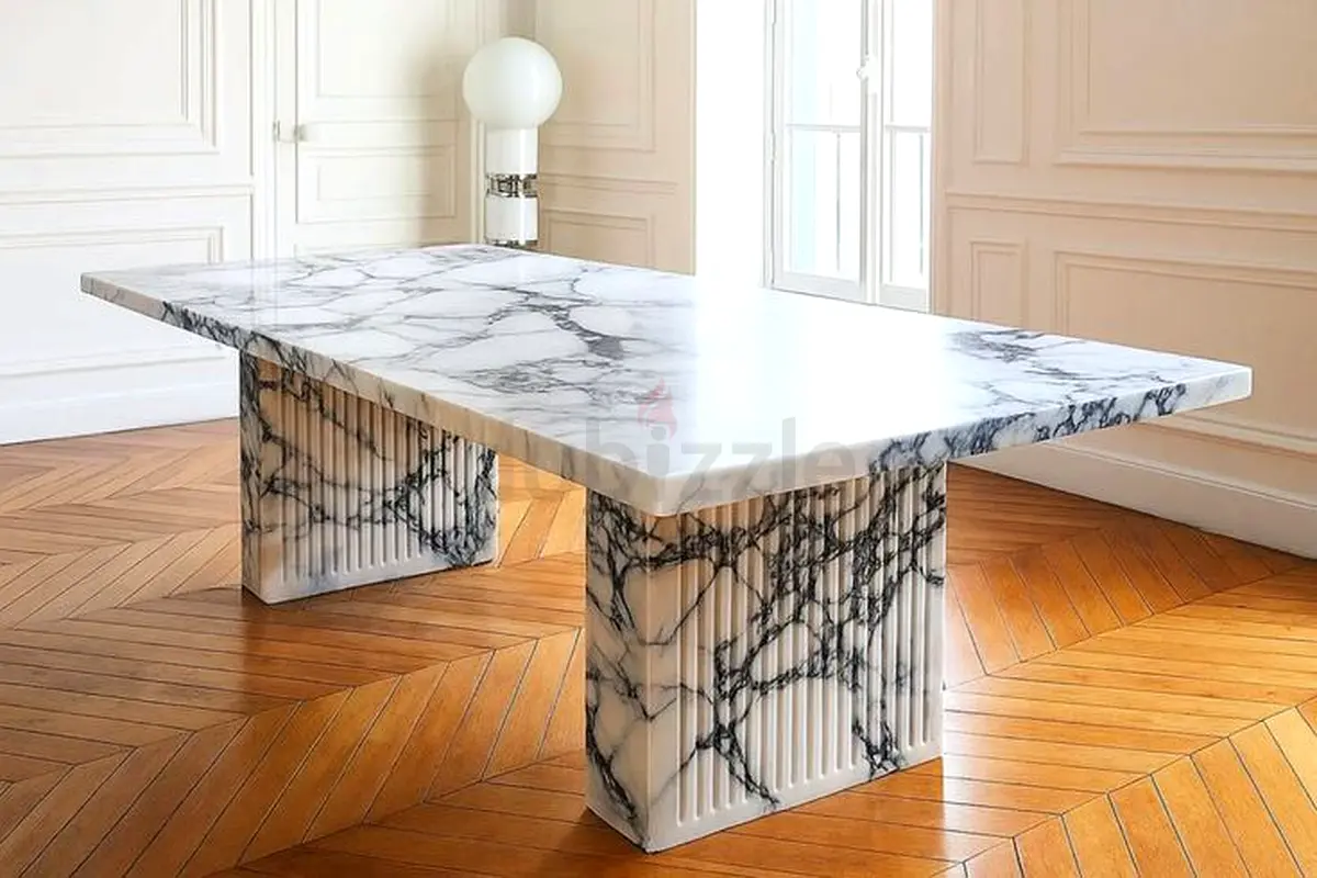 I'm selling a stunning Calcutta Viola Marble Dining Table that’s brand new and never used. This table effortlessly combines elegance and sophistication, making it a perfect centerpiece for your dining area. The flawless white marble surface is beautifully veined, capturing attention and adding a touch of luxury to any room. With a generous rectangular shape, it comfortably seats up to 8 people, making it ideal for both intimate dinners and larger gatherings. The stylish base not only provides sturdy support but also enhances the overall aesthetic of the table. If you're looking for a statement piece that elevates your dining experience, this is it!