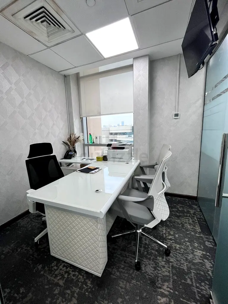 Upgrade your workspace with this elegant executive desk set, designed to combine style and functionality. The desk features a durable glass top that adds a modern, sophisticated touch while protecting the surface underneath. The base showcases a refined upholstery design, giving it a unique and luxurious appearance.