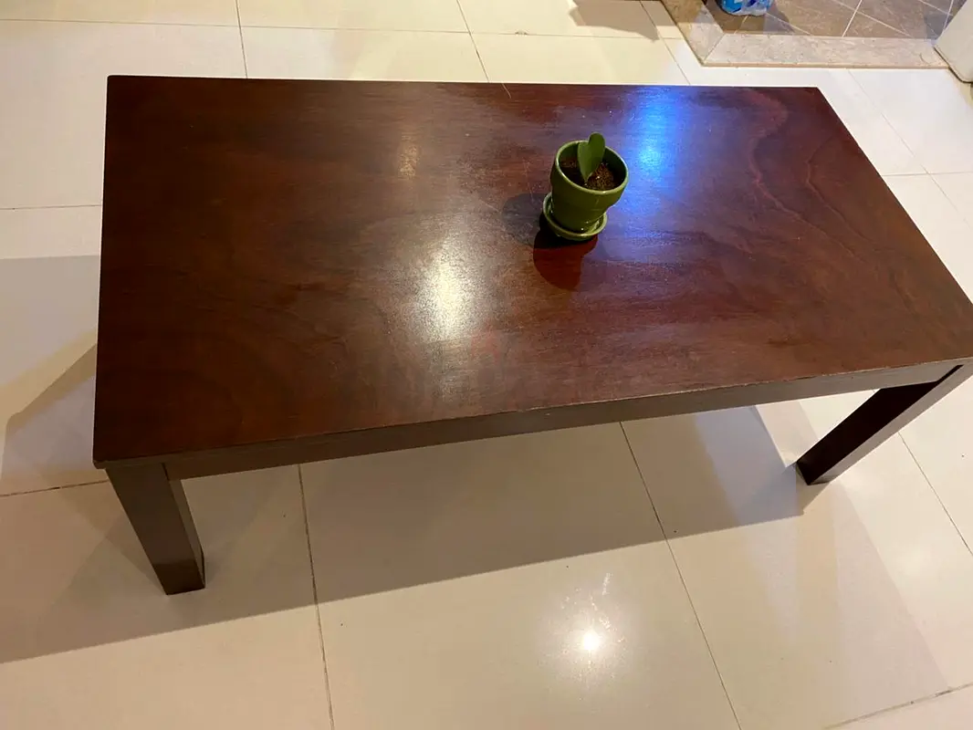I’m selling a solid wooden coffee table that has been a lovely addition to my living space. The table is rectangular in shape, featuring a rich brown color that blends well with various décor styles. It's perfect for guests in the living room.