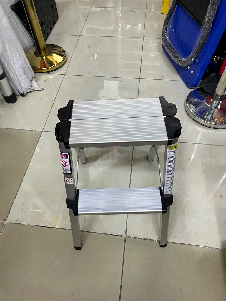 Introducing the Compact Aluminum Step Stool - Perfect for Every Home! This brand new, flawless step stool is never used and comes in a sleek silver color, making it a modern addition to your home or garden. Designed for maximum stability and convenience, this lightweight yet sturdy stool is perfect for reaching high places, whether you're working on home projects or simply accessing hard-to-reach areas. Its compact size makes it easy to store when not in use, and its durable aluminum construction ensures it will last. Upgrade your home essentials with this practical and stylish step stool!