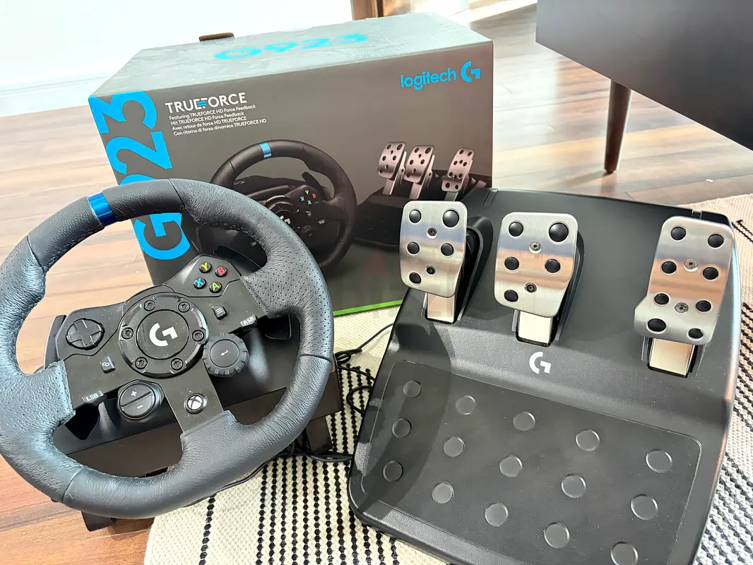 Selling my Logitech G923 racing wheel with pedals, only 1 month old and in excellent condition — barely used!