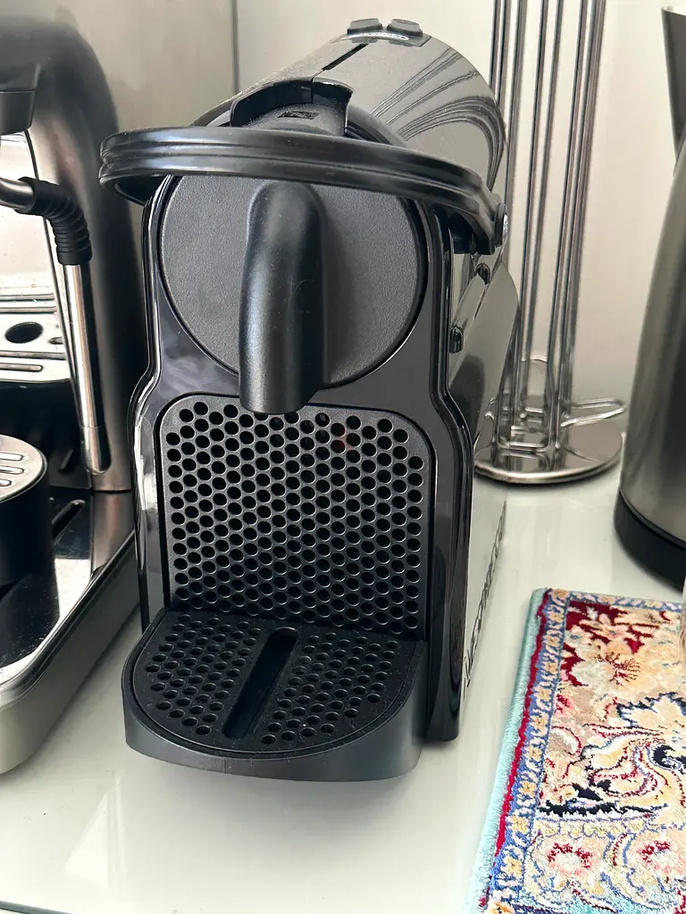I'm selling my compact black coffee machine, about 6-12 months old. It's in good condition and has only been used lightly in my home. The machine works well, brews espresso-style coffee, and the drip tray and capsule area are clean. There is no warranty remaining. I'm including the power cord shown in the photos. Ideal if you want a simple, space-saving coffee maker for daily single-serve use.