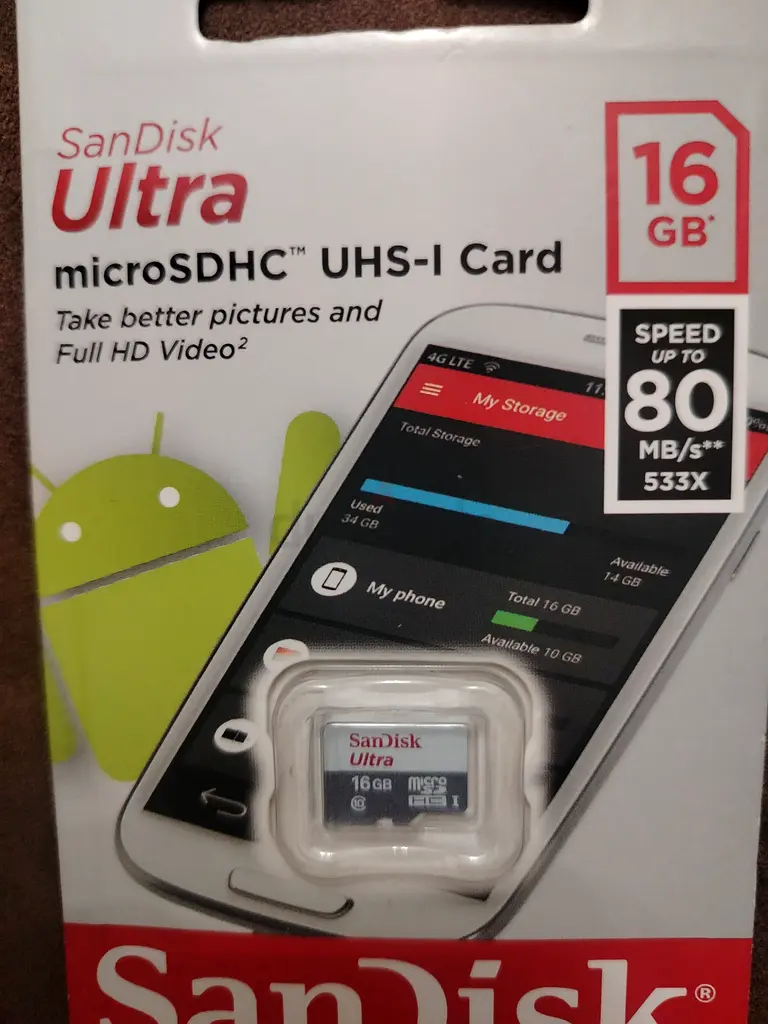 I am selling a brand new SanDisk Ultra 16GB microSDHC UHS-I Card. This card is in flawless condition and has never been used. It offers speeds up to 80 MB/s, making it ideal for taking better pictures and recording Full HD video. Perfect for expanding your device's storage!