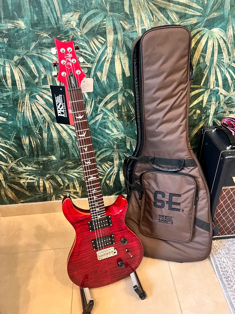 Up for sale is a BRAND NEW PRS CUSTOM SE 24 in a stunning RUBY RED finish. This limited edition electric guitar is perfect for any musician looking to make a statement. It is in flawless condition and has never been used, making it a fantastic opportunity for collectors and enthusiasts alike. With its exceptional craftsmanship and beautiful design, this guitar offers both aesthetic appeal and superior sound quality. Don't miss your chance to own this exquisite instrument!