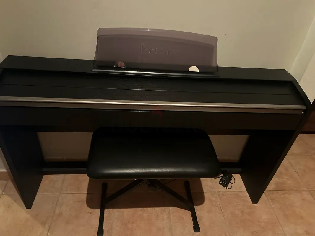 I am selling my Casio Privia digital piano with its matching bench and stand. It's about 2–5 years old and in excellent condition with normal home use. The piano is black and well maintained, with all keys and controls working fine. It comes with the bench shown and the pedal unit. No visible scratches or damage on the cabinet. Ideal for practice or home use — easy to move and set up.