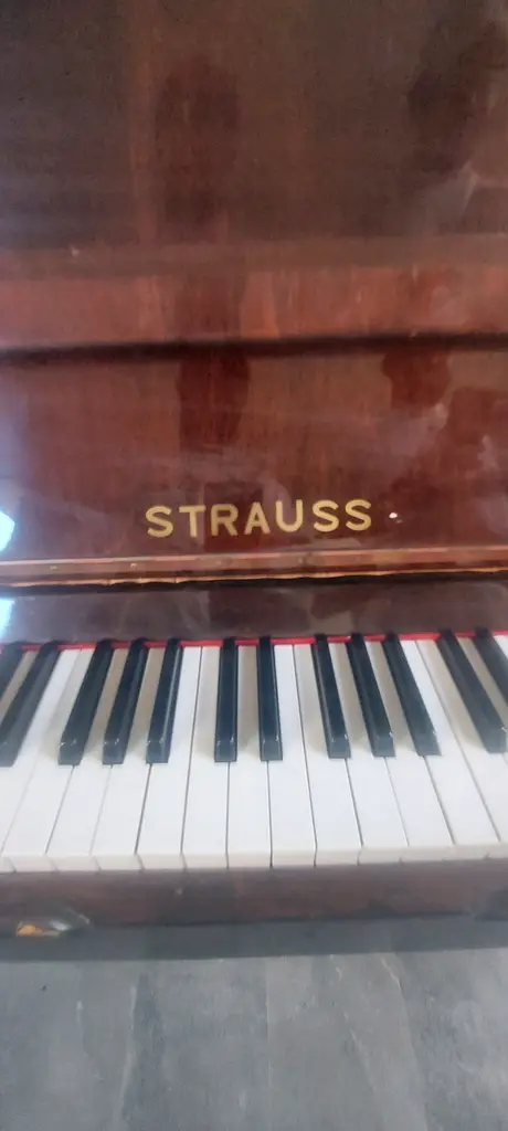 Selling my well-kept Strauss upright piano in beautiful glossy brown finish. Used for over 10 years but maintained carefully. It has no scratches, all keys work perfectly, and it still produces a warm, rich tone.