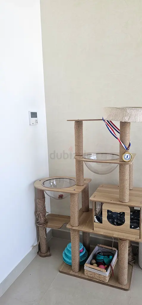 I’m selling a large, stable multi-level cat climbing frame that’s in like-new condition. I bought this for my two cats and it’s been lightly used — no damage or strong odors. It has multiple platforms, sisal-wrapped scratching posts, cozy cubbyholes and detachable clear bubble perches for lounging. The base is sturdy so it doesn’t tip, and the materials (plush fabric and sisal) are clean. Perfect for cats who like to climb, scratch and nap at different heights. Comes from a smoke-free home.