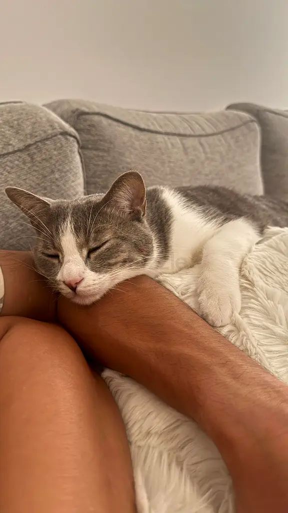 I’m rehoming my affectionate indoor cat three years old. He’s very calm, loves to curl up on my lap and sleep next to me, and is comfortable being handled. He’s trained, vaccinated, and has been spayed. I’m available to answer questions and share more photos or health records if needed.