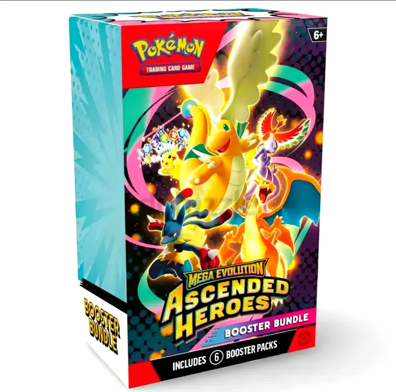 - Includes: 6 sealed booster packs (Mega Evolution Ascended Heroes)