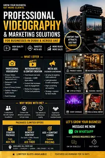 Looking to grow your business online and attract real customers? I help brands in Dubai & across the UAE create high-quality video content + targeted ads that actually convert.