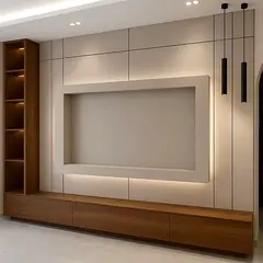 Tv unit Pvc and fiber material Best look best work Quick work Customise design as per size Any design any size Full home renovation decore Tv wall , bedroom living room Flor ceiling , paint etc all Feel Free to contact f