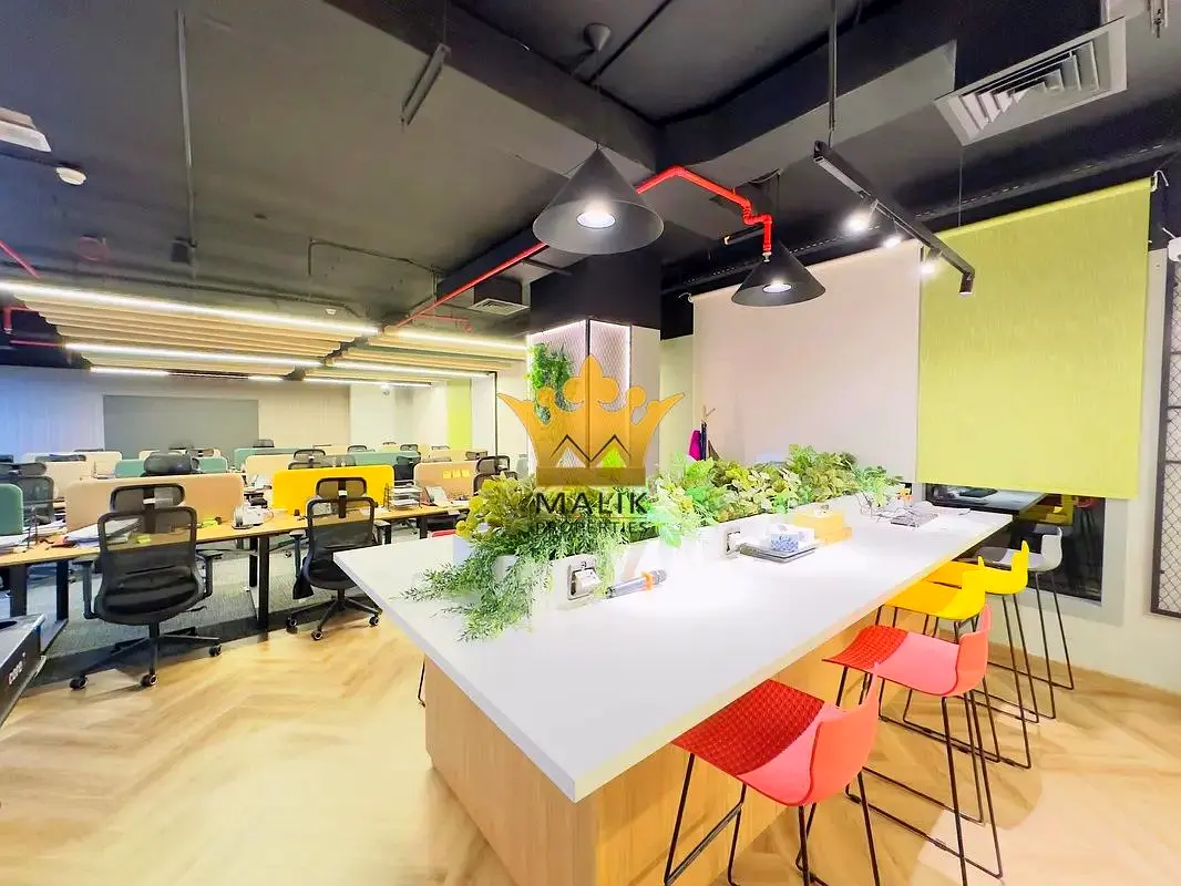 - Furnished open-plan workspace with multiple workstations