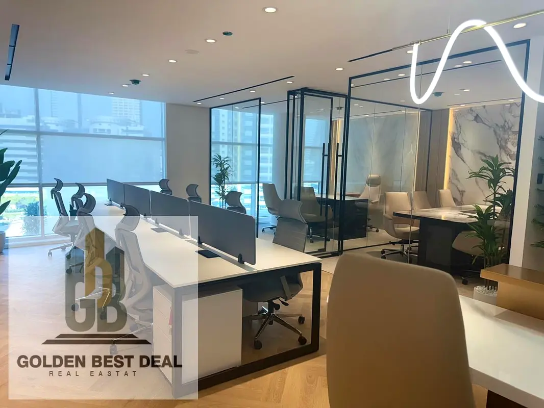 Office for rent in Magnum Opus Tower, Barsha Heights (Tecom), Dubai. This commercial space is configured as a modern fitted office with a mix of open-plan work areas, private cabins and meeting rooms. Large windows and glass partitions create a bright environment with multiple work settings suitable for teams and client-facing operations.
