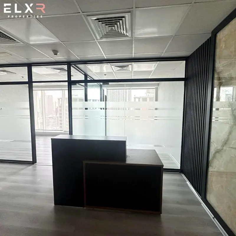 Beautifully designed office featuring glass partitions, efficient workspace planning, bright interiors, and stunning skyline views. Ideal for consultancies, startups, trading companies, and professional firms.