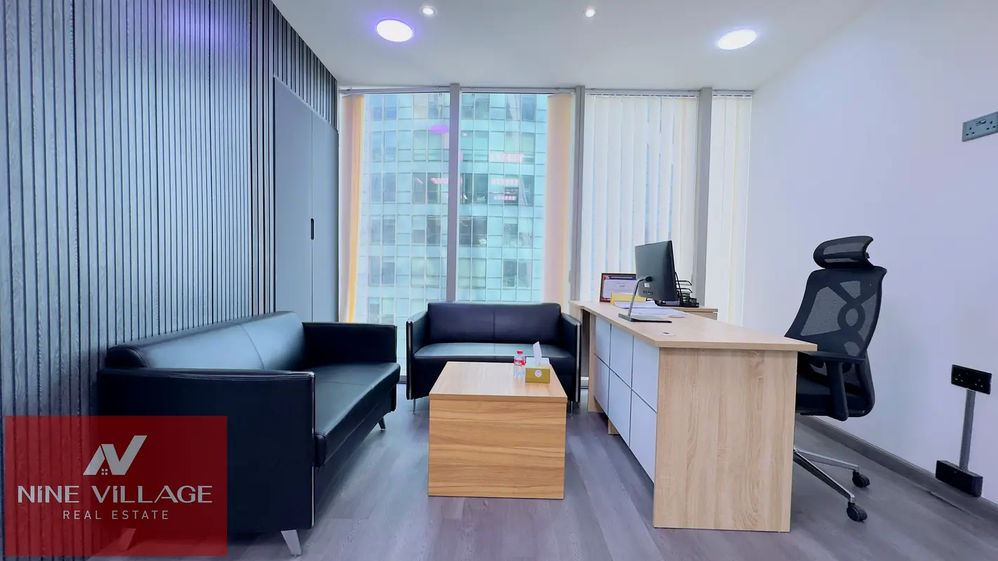 Nine Village Real Estate proudly presents this elegant, fully furnished office in The Prism Tower, ideally located in the heart of Business Bay.
