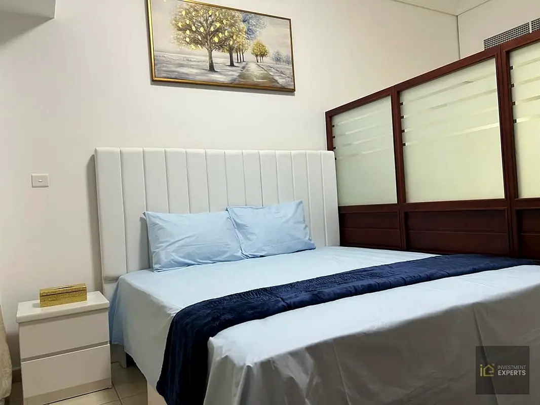 This furnished studio apartment for rent in Lake Terrace, JLT Cluster D, offers a practical layout in a well-known tower. The living and sleeping area is arranged to maximise space, with defined zones for lounging, dining and resting. Neutral finishes and tiled flooring give the unit a clean, low-maintenance feel.