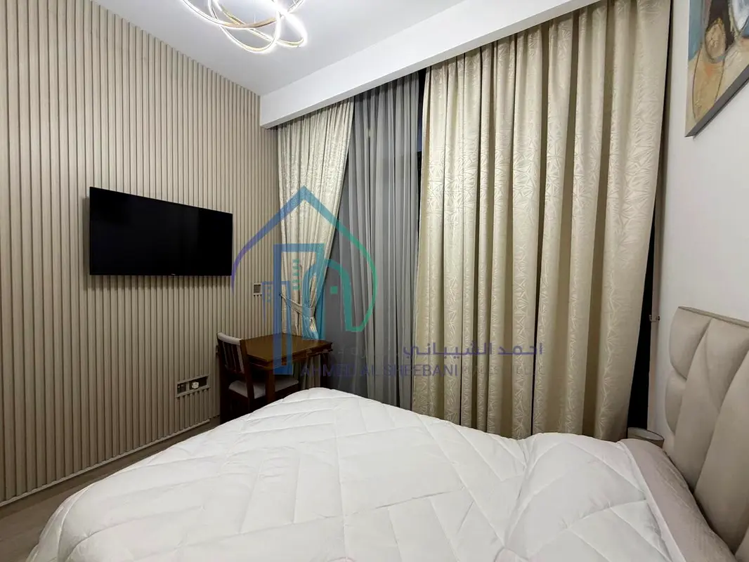 This furnished studio apartment for rent in Azizi Riviera 40, Azizi Riviera, Meydan One, Dubai, offers a practical layout with contemporary finishes. The home features an open-plan sleeping and living area, integrated kitchenette, and a well-appointed bathroom, making it suitable for single occupants or frequent travellers seeking a functional base in Meydan. Full-height windows and an attached balcony capture attractive community, pool and city views at night.