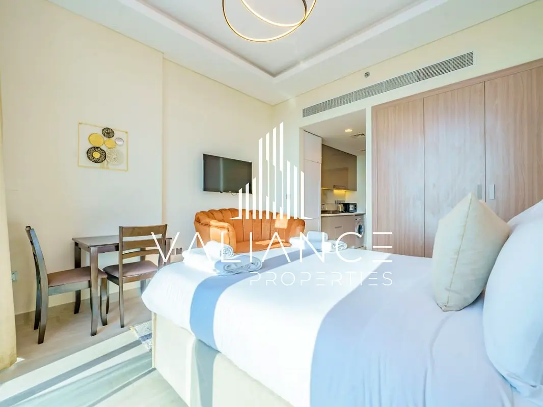 Fully furnished studio apartment available for rent in Farhad Azizi Residence, Al Jaddaf. This well-maintained unit offers a smart open-plan layout combining living, sleeping, and dining areas, making it ideal for comfortable city living.