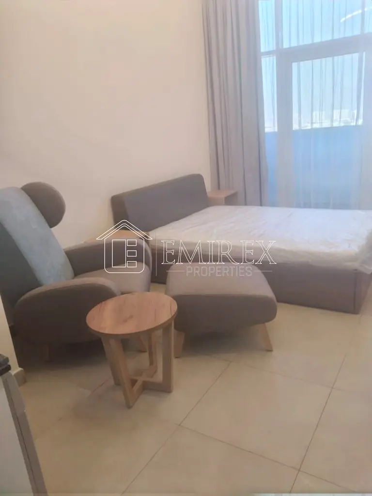Furnished studio apartment for rent in Azizi Plaza, Al Furjan, Dubai. This well-planned unit on a mid floor offers a practical open-plan layout combining sleeping, living and kitchenette zones, with large windows providing a pleasant city and community outlook. The property is suitable for residents seeking an efficient space in a residential hotel-style building.