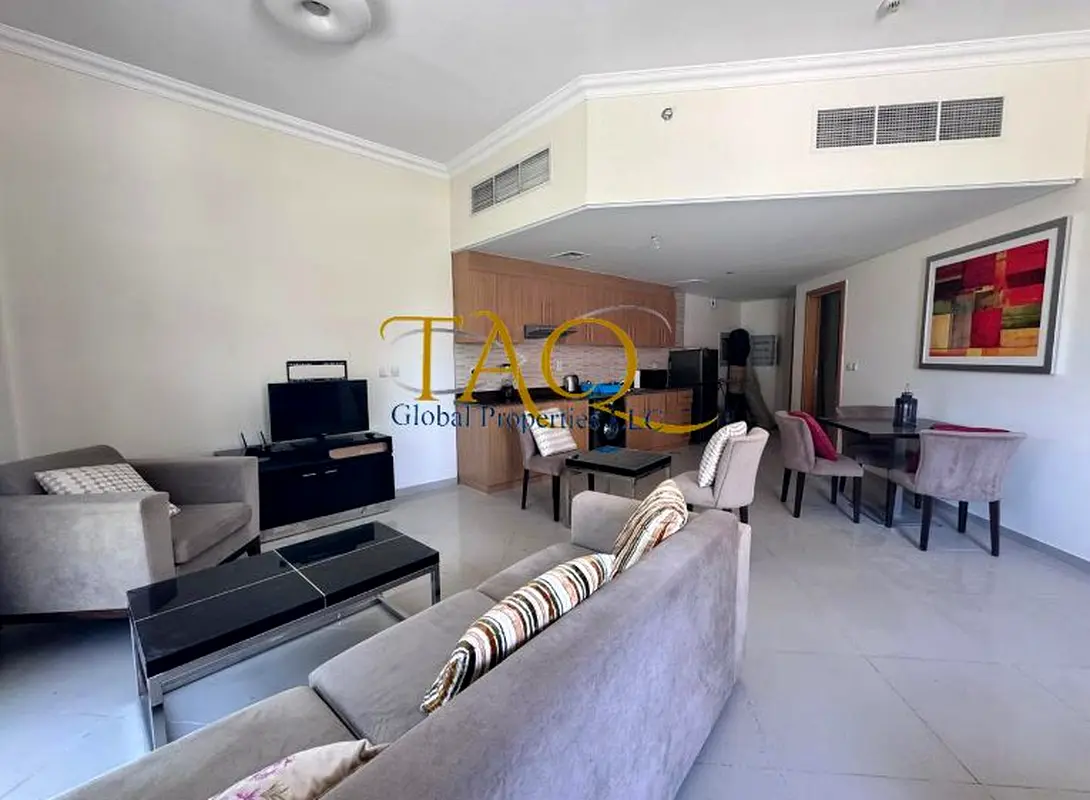 This 1-bedroom apartment in Lincoln Park Westside is available for rent in Arjan, Dubai. The home features an open-plan layout combining the living, dining and kitchen areas, with tiled flooring throughout and partial furnishings. Large arched windows in the living room and bedroom provide good natural light and views over the surrounding streets and nearby buildings. Key Features: