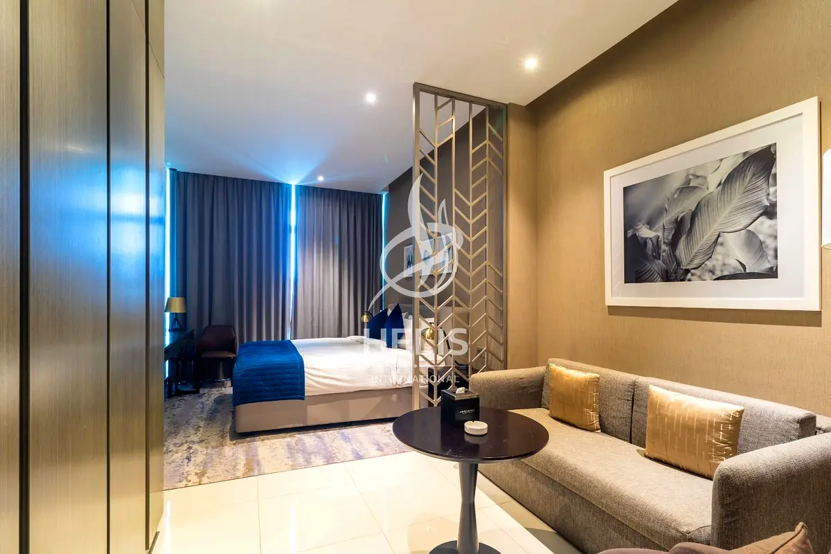 This residential studio apartment for rent is located in Damac Maison Prive Tower B, Business Bay. Positioned on a higher floor, it offers a practical layout with an open living and sleeping area, modern bathroom, and a fitted kitchen. Large windows frame views over the canal, marina-style waterway, and surrounding city skyline. Key Amenities & Features: - Studio layout with combined living and sleeping space - Furnished with sofa, TV console and coffee table - Bedroom area with double or twin beds and bedside storage - Fitted kitchen with built-in oven, gas hob and extractor hood - Integrated dishwasher and double sink under window - Modern bathroom with bathtub, shower and vanity - Floor-to-ceiling windows in living and bedroom areas - Canal, marina and city skyline views Additional Property Highlights: - Downtown city and Business Bay skyline outlook - Waterfront canal aspect from main living zones - Neutral interior finishes and tiled flooring - Desk/console space suitable for work or study - Window treatments with sheer and blackout curtains - High-rise tower environment with modern façade - Residential community along Dubai Canal - Established mixed-use surroundings in Business Bay - Short drive to Downtown Dubai and Dubai Mall - Access to main roads connecting to wider Dubai Located in DAMAC Maison Prive in Business Bay, the apartment benefits from a waterfront setting along Dubai Canal with marina-style views and a city backdrop. The area offers a mix of residential, hospitality and commercial buildings, with convenient access to Downtown Dubai, retail destinations and major transport links for daily commuting.