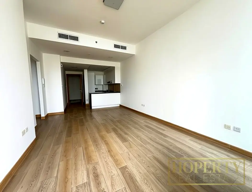 This 1-bedroom apartment for rent in Bloom Tower B in Jumeirah Village Circle (JVC) offers a practical layout with an open-plan living area and contemporary finishes. The home is set on a high floor and is unfurnished, with wood-effect flooring and a balcony showcasing a downtown city skyline view. Key Features: