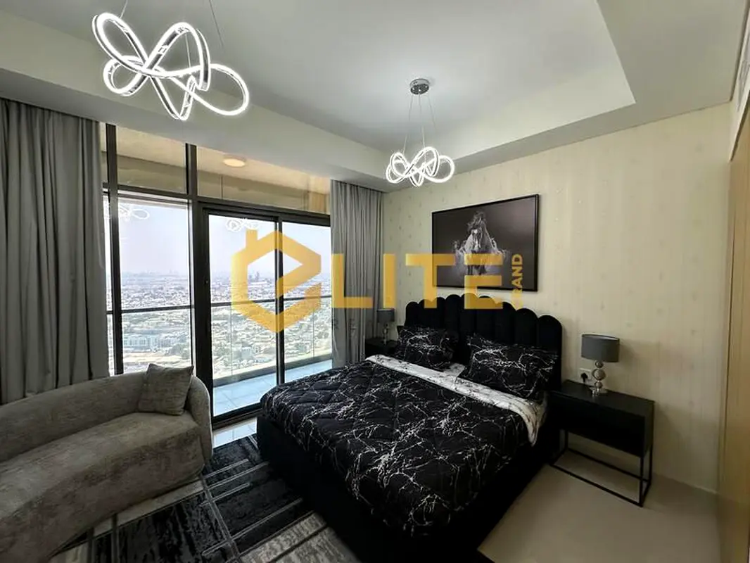 This furnished studio apartment for rent in Aykon City Tower C at Aykon City, Business Bay, offers a practical layout on a higher floor. The unit combines a sleeping area and kitchenette, with modern finishes, built-in storage, and large windows capturing a downtown city view, making it suitable for single professionals or frequent travelers.