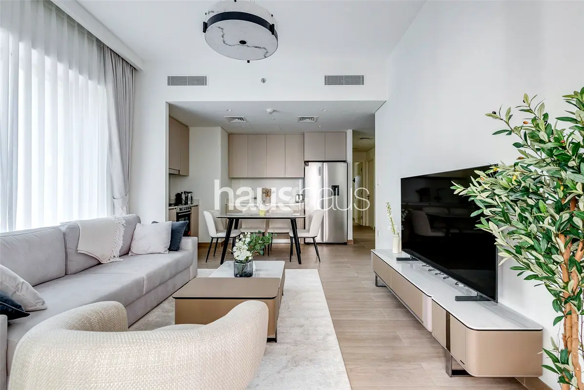 haus & haus is proud to present this beautifully furnished 2-bedroom apartment in Lotus at Creek Beach, offering a perfect balance of modern design and relaxed waterfront living. The property features a spacious open-plan living and dining area, complemented by floor-to-ceiling windows that fill the space with natural light and create a bright, inviting atmosphere. The fully equipped contemporary kitchen is designed for both style and functionality, while both bedrooms are generously sized with built-in wardrobes, providing comfort and practicality.
