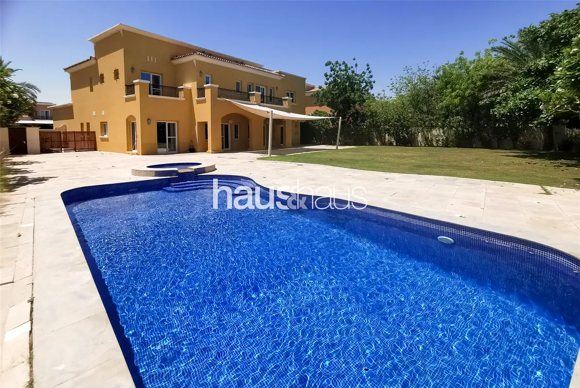 haus & haus is pleased to present to the market this exceptional Type 13 villa in Mirador La Coleccion, Arabian Ranches. Boasting uninterrupted golf course views, this spacious home offers six well-sized bedrooms, seven bathrooms, and a generous built-up area, all set on a large plot with a private pool and beautifully landscaped garden.