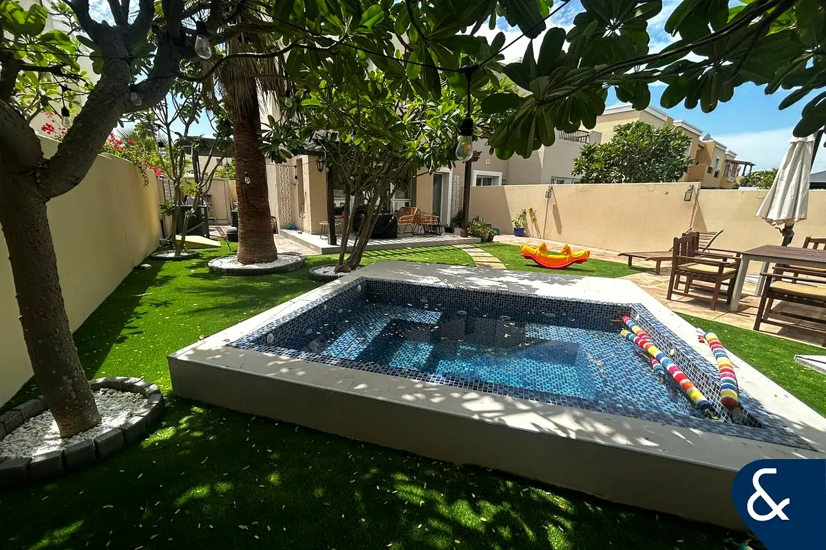 This beautifully maintained villa features a fully landscaped garden complete with a small pool, jacuzzi tub, and dedicated BBQ area—perfect for entertaining and family living.