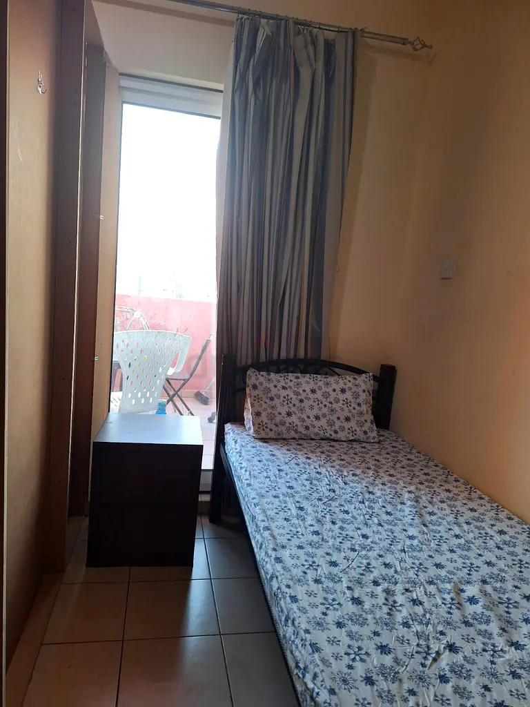 Partition available with glass window executive indian male Balcony Including wifi dewa cleaning Near supermarket restaurant metro bus stand Ibn mall only 10mint walk Rent 1900dhs Deposit 500dhs Contact
