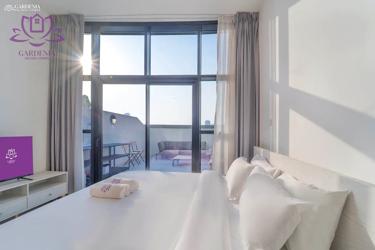 Gardenia Holiday Home proud to offer you the cozy Dubai escape! This fully furnished elegant studio in O2 Tower, Jumeirah Village Circle blends modern charm with total convenience — perfect for solo travelers, couples, or business guests on short or extended stays.
