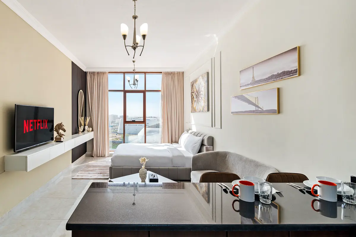 Modern Furnishings: The apartment comes fully furnished with high-quality, contemporary furniture and stylish décor. From the cozy bed to the comfortable seating area, every detail has been thoughtfully curated to create a welcoming and relaxing atmosphere.