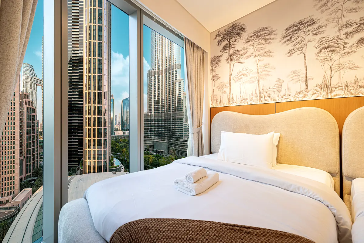 Lucent Stays introduces an ultra-luxury designer residence with panoramic Burj Khalifa views. Thoughtfully curated interiors and premium finishes in the heart of Downtown Dubai, just a 1-minute walk to Burj Khalifa and Dubai Mall. Ideal for refined city living.