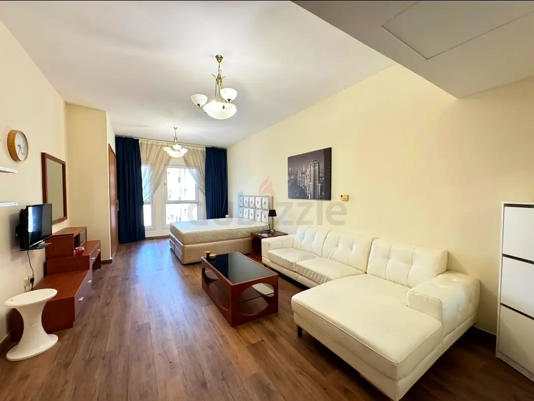 Fully furnished Studio 4800 permonth The biggest layout in JVC minimum 1 month Dewa and gas available No wifi Comes with: Bed,Sofa or small couch TV + TV unit Coffee table Kitchen and bathroom. No broker fee Contact by WHATSAPP EMirates ID is a must