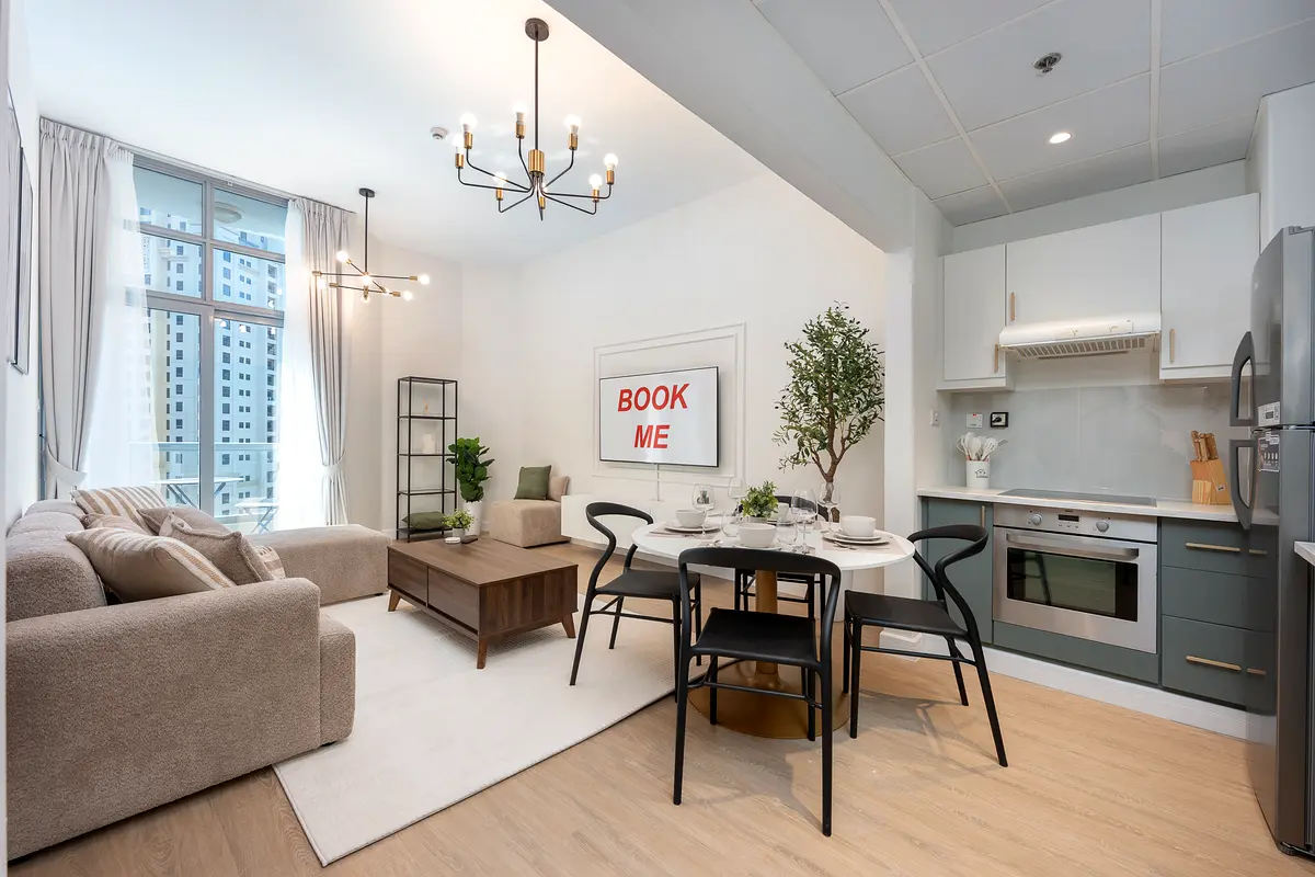So, welcome to what we think is a truly awesome apartment. It's right in the middle of all the goings-on in Dubai Marina and literally 5 minutes from the public sandy beaches. There are lots of epic restaurants and bars to walk to without having to take any form of transport. The apartment is of a fine neutral taste and has all you need to enjoy the Dubai lifestyle. The JBR walk and Bluewaters Island is a 10-minute walk away with more options.