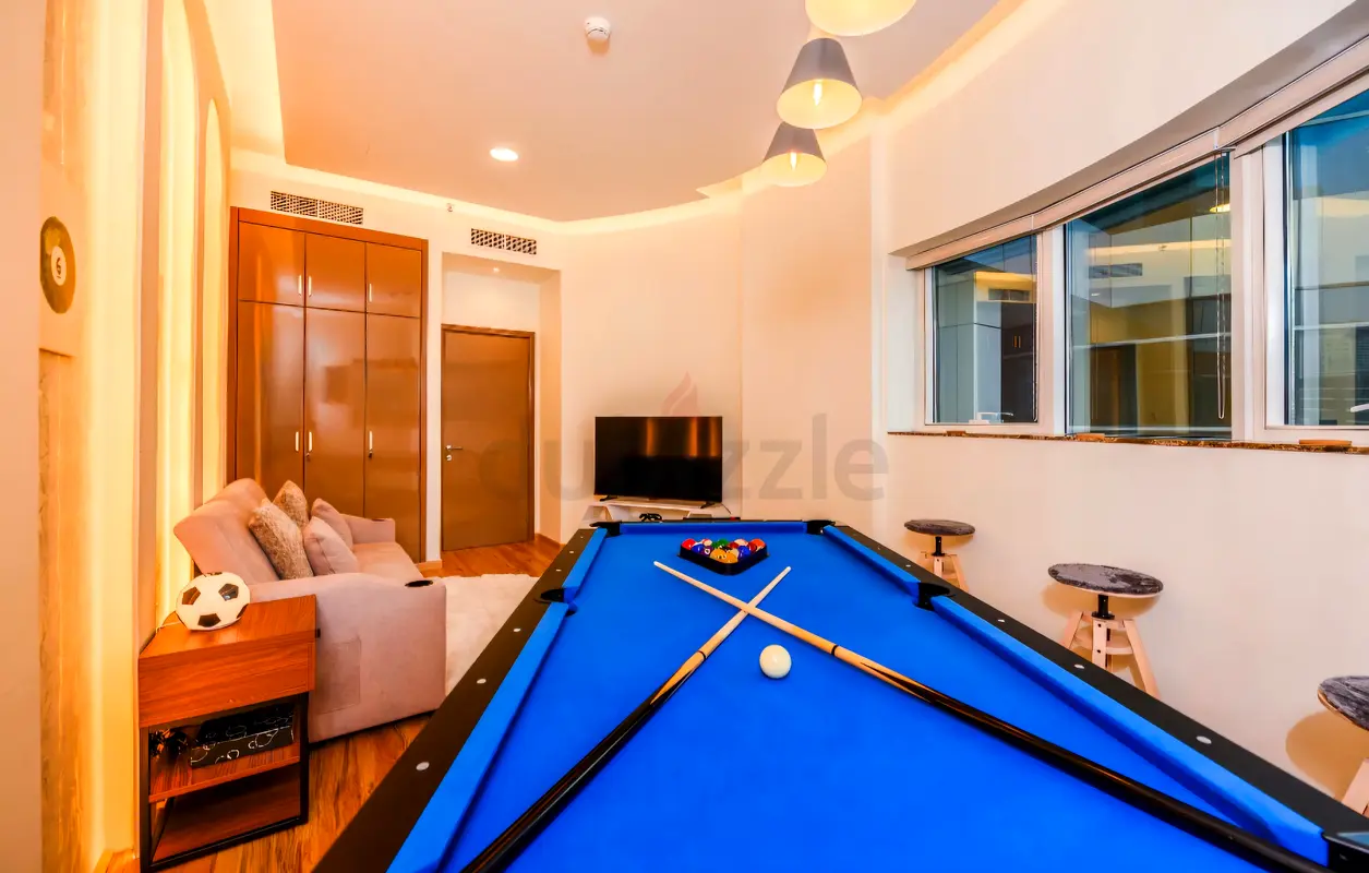 Step into a thoughtfully designed 2.5-bedroom residence that perfectly blends comfort, functionality, and style. This home features two spacious bedrooms, a versatile half-bedroom that doubles as a game room or guest room with a sofa cum bed, crafted for entertainment and relaxation. Sleek modern kitchen with a coffee maker and a double door refrigerator, ideal for both everyday living and hosting. Large windows bring in abundant natural light, creating a bright and inviting atmosphere throughout the home.