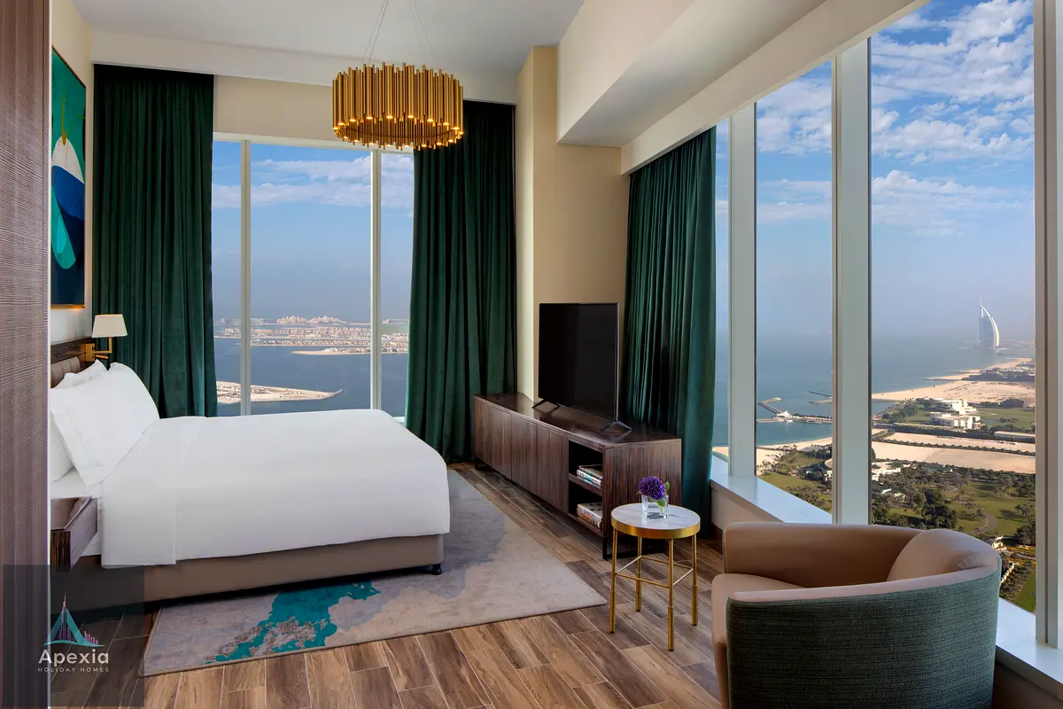 Fully furnished 3-bedroom apartment available in Avani+ Palm View Dubai Hotel & Suites, offering a premium serviced living experience with panoramic sea views at the entrance of Palm Jumeirah.