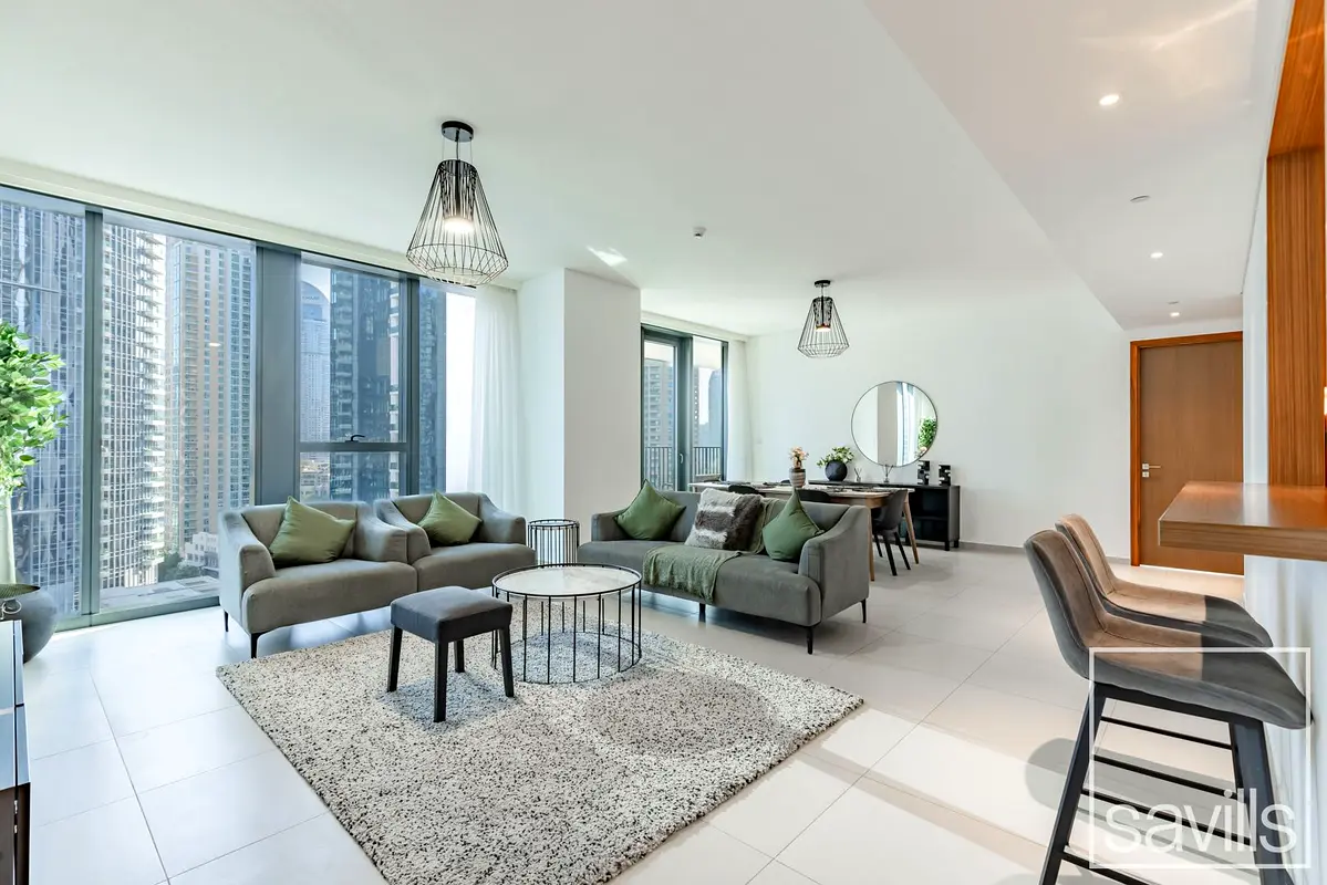 Offered for sale in BLVD Heights, this exceptional corner apartment features one of the largest and most desirable layouts in the building. Spanning 1,735 sq.ft., the residence offers two spacious bedrooms and three well-appointed bathrooms, designed for both comfort and functionality. The apartment is known for having one of the biggest living areas in the tower, creating a bright and expansive space ideal for both everyday living and entertaining. Large windows allow abundant natural light to flow throughout the home, enhancing the sense of openness. The kitchen comes fully equipped with all white goods and connects seamlessly to the living and dining area, while a separate laundry room adds practical convenience. Located in a popular Downtown residence with modern facilities and easy access to major roads, the property is also within walking distance of Burj Park and Dubai Mall, offering an outstanding lifestyle opportunity in one of the city’s most sought-after locations.