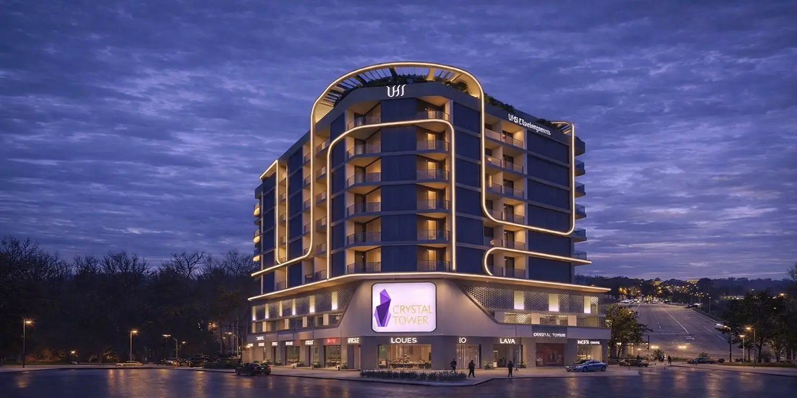 Crystal Tower in International City is a residential building with a contemporary curved façade and ground-floor retail. The area offers a mix of residential and commercial uses, with everyday conveniences close by. Residents benefit from road connectivity across Dubai and a growing selection of community services. International City is known for its practical urban layout with access to shops, dining, and regular transport links.