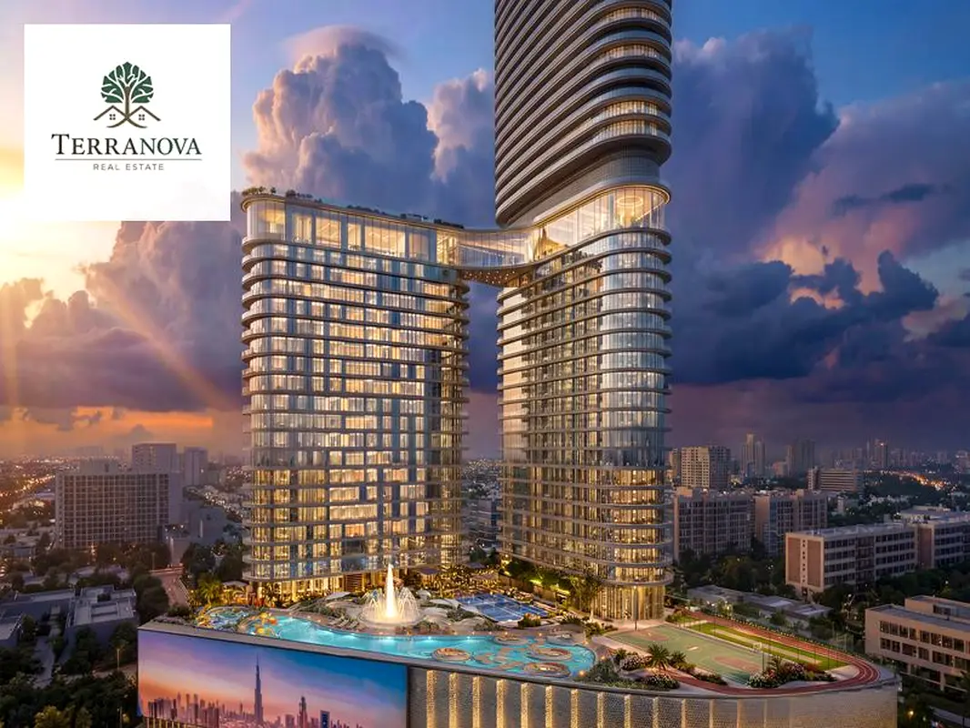 This 1-bedroom furnished apartment for sale in Serenz by Danube Tower A, Jumeirah Village Circle (JVC), offers a practical layout in a new residential development. Located on a high floor, it features an open-plan living, dining and kitchen space, a well-appointed primary bedroom, and full-height windows framing expansive skyline and downtown city views.