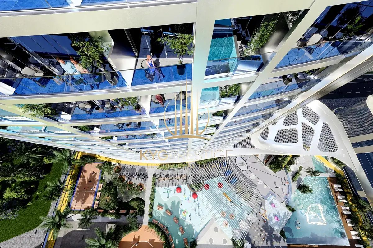 KYG Prestige Properties proudly presents this exceptional high-floor 3-bedroom + maid’s duplex apartment with a private pool in Fashionz by Danube, Jumeirah Village Triangle, a rare and ultra-luxury offering designed for elevated living.