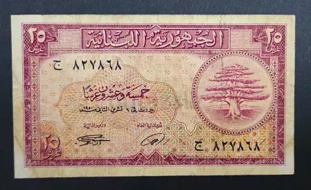 Lebanon 25 Piastres Banknote, 1950