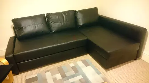 Black L-shaped Leather Sofa bed Good Condition