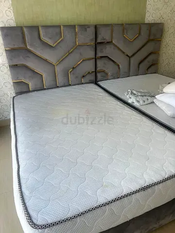 Grey Upholstered Double Bed Frame with matress